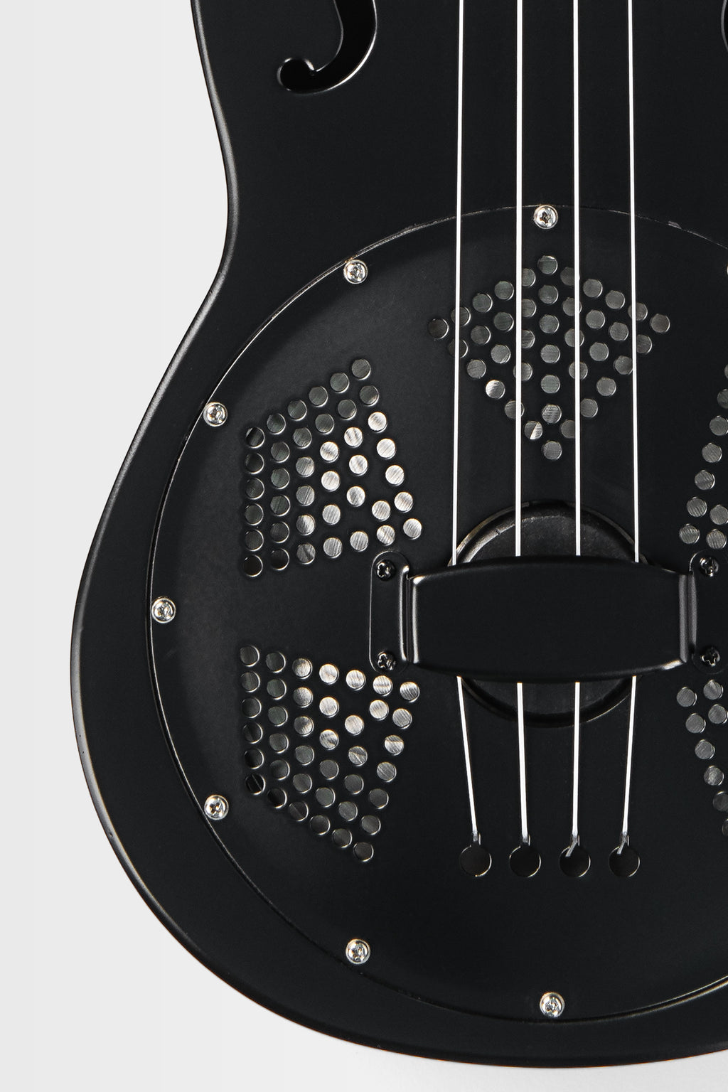 Dressed in stealthy matte black, this tenor resonator offers a modern twist on a vintage concept. The all‑brass body and aluminum cone create a bold, metallic timbre with plenty of volume—perfect for blending into louder ensembles or adding a unique edge to acoustic sets. The understated finish highlights the instrument’s simple lines, and a passive pickup provides plug‑and‑play convenience. Ideal for players who crave a striking aesthetic and a distinct tonal character on a familiar tenor scale.