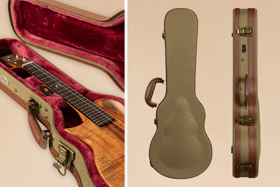 This model comes in an Olive Tweed Archtop Revelator Ukulele Hard Case.