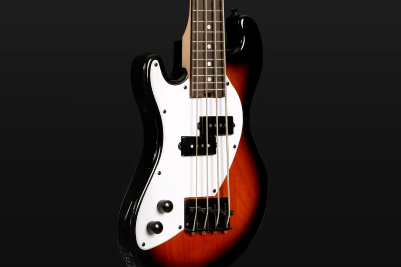Offset contoured body for comfort and balance. Split-coil pickup delivers thick, meaty character. Classic 4-string electric bass in compact format.