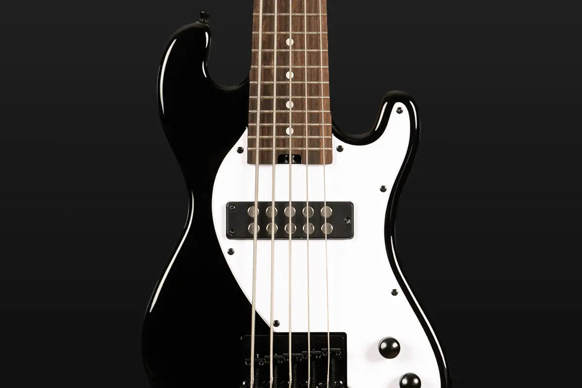 Extended range with low B string. Offset contoured body for comfort and balance. Humbucker pickup delivers thick electric tone in compact format.